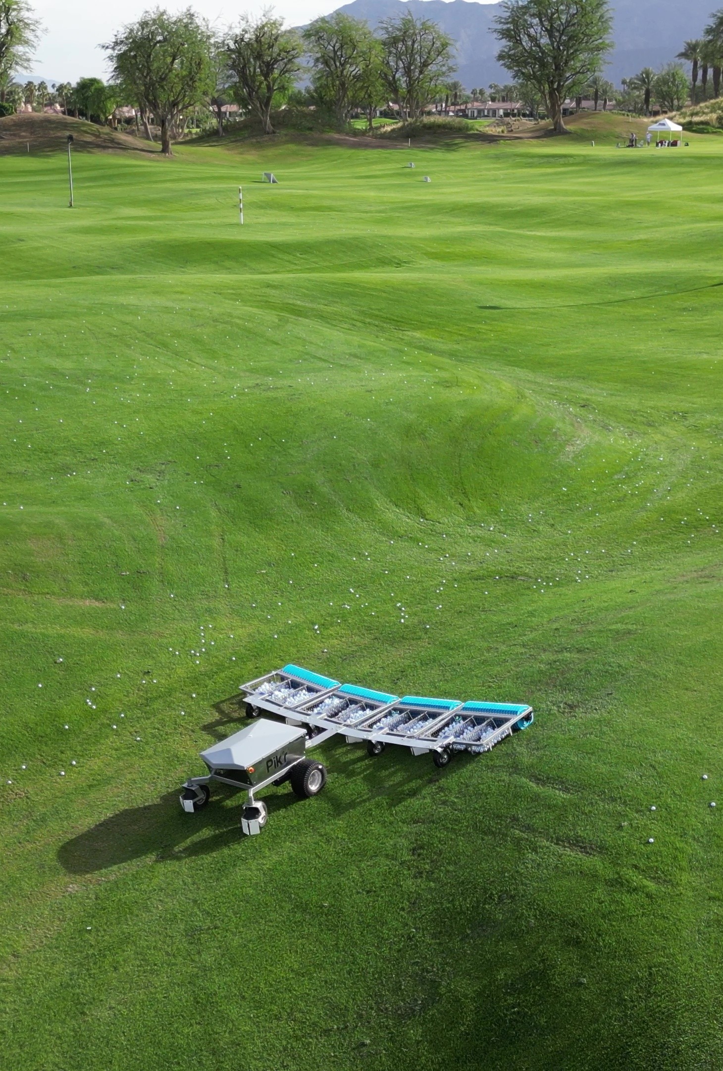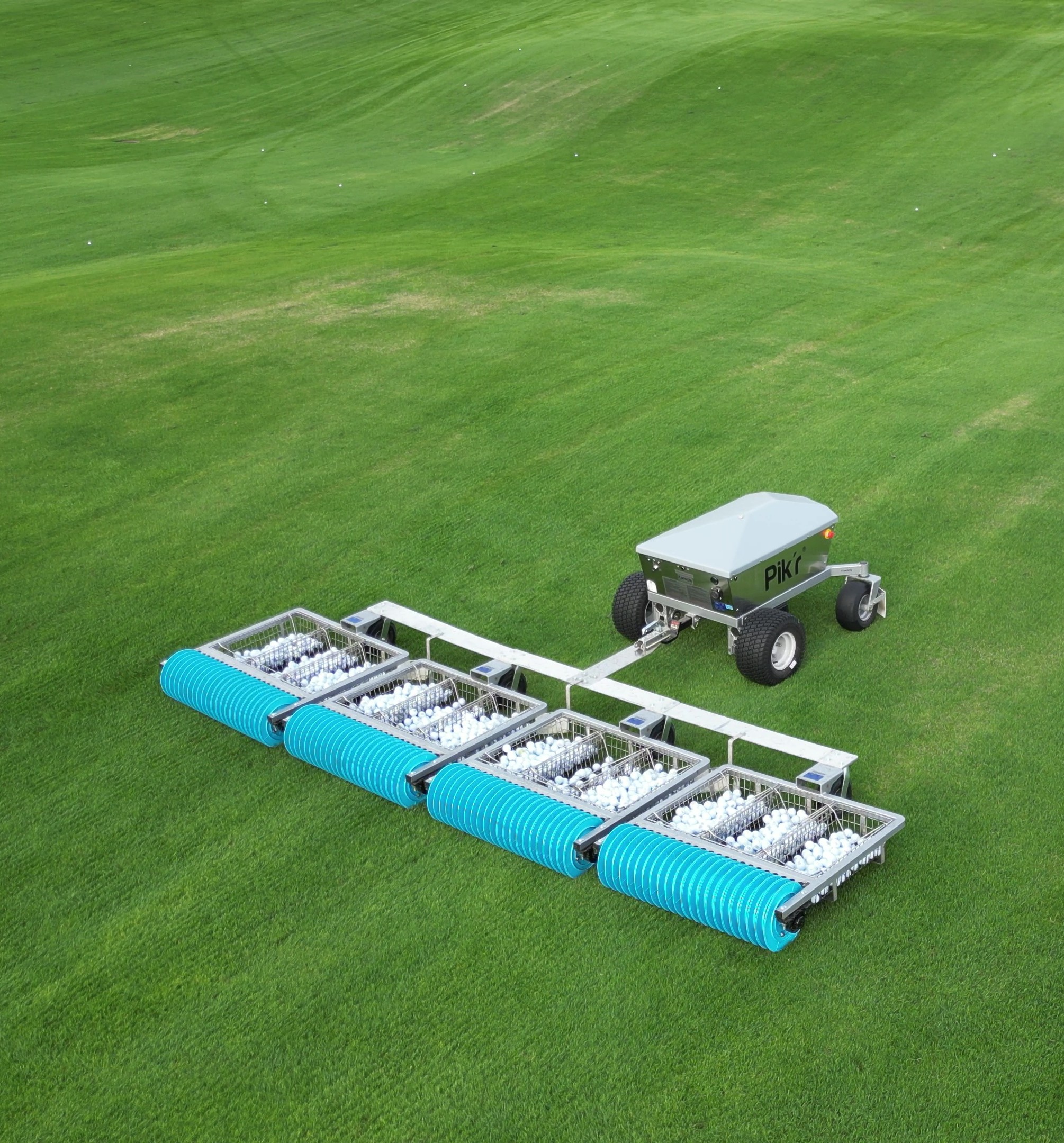 Korechi’s range picker is a rugged and highly-maneuverable golf ball picking apparatus that is purpose-built and optimized to work with our Pik’r line of range robots. The Pik’r-X can tow 1, 2 or 3 gangs of the range picker, while the Pik’r-XL is optimized for 3, 4, or 5 gangs depending on the size of the driving range, and volume of balls played.
